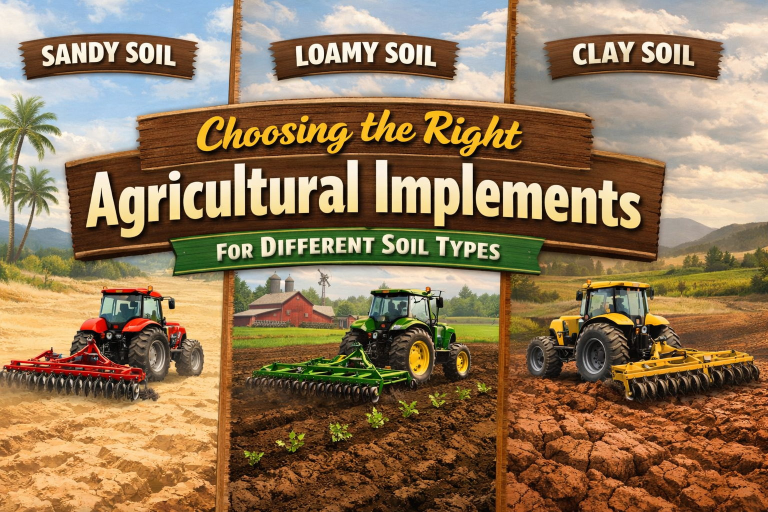 Learn how to choose the right agricultural implements for clay, sandy, loamy, black cotton, and rocky soils. Improve productivity, reduce tractor wear, and boost efficiency with quality spare parts from Gropart.